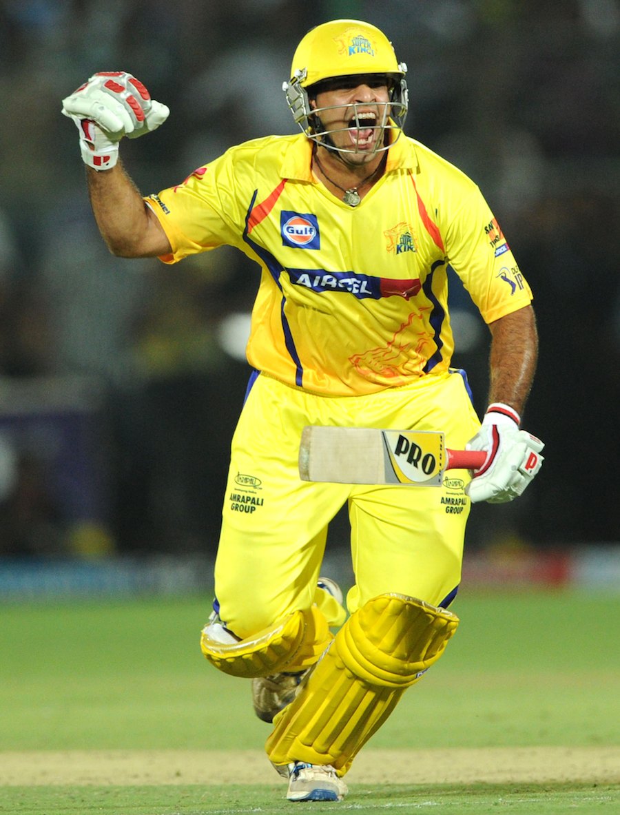 S Anirudha celebrates a tense win for Chennai Super Kings after scoring 18 off 6 balls in the final overs against